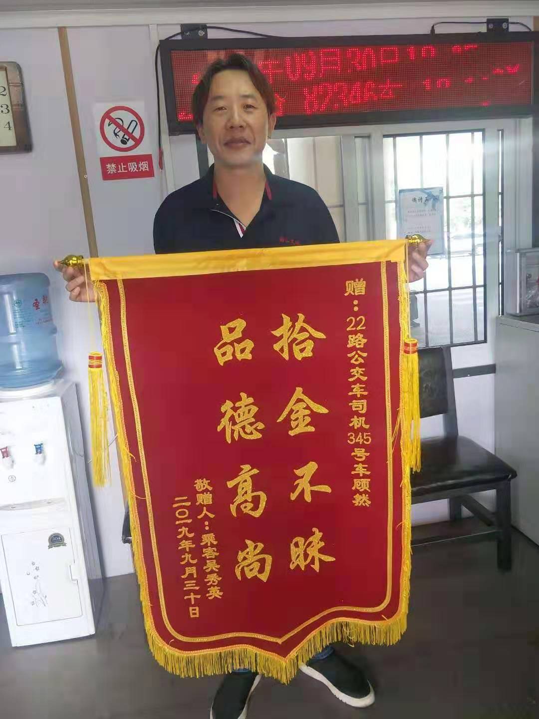 “感謝公交公司培養(yǎng)了這么好的師傅啊,要不是你們主動(dòng)打電話給我,我丟都不道哪丟的,我還得去補(bǔ)證件太麻煩了!” 9月30日一大早,家住在鐵西區(qū)的吳大娘手拿錦旗急匆匆來(lái)到了公交22線樞紐站休息室內(nèi),找到3080345號(hào)車(chē)駕駛員顧然師傅,親自將印有“品德高尚,拾金不昧”的錦旗送到他的手中。 原來(lái)在3天前的下午,吳大娘在鐵西區(qū)委乘坐22線公交車(chē)后,因隨身攜帶的東西太多,把手提包及背包都放在了座椅的一側(cè),吳大娘在二臺(tái)子站下車(chē)后回到家中突然發(fā)現(xiàn)背包沒(méi)有了,吳大娘心急如焚,因?yàn)楸嘲锊粌H僅有幾十元的現(xiàn)金還有很多重要的證件及證明材料,這些東西對(duì)自己十分重要,補(bǔ)辦十分不便。因?yàn)樯狭四昙o(jì),吳大娘記不起背包到底丟在哪里了,正在焦急尋找之時(shí),吳大娘接到了鞍山交運(yùn)集團(tuán)三公司客運(yùn)八隊(duì)駕駛員顧師傅的電話,詢問(wèn)她是否丟失了一個(gè)背包。顧大娘接到電話后立即趕到站前樞紐站調(diào)度室,取回了遺失的背包!原來(lái)在公交車(chē)到終點(diǎn)后,顧師傅在車(chē)內(nèi)例行巡視時(shí)發(fā)現(xiàn)了這個(gè)背包,打開(kāi)后找到了有吳大娘的聯(lián)系方式并撥打了這個(gè)電話。 22線不僅是文明服務(wù)線路更是交運(yùn)集團(tuán)迎賓線路,從創(chuàng)建迎賓線路開(kāi)始,全體22線駕駛員始終不忘初心,為的就是服務(wù)好每一名乘客。顧然同志所在路隊(duì)已對(duì)顧然同志給予了公開(kāi)表?yè)P(yáng),并勉勵(lì)全體同志要把“學(xué)習(xí)雷鋒好榜樣,優(yōu)質(zhì)服務(wù)暖人心”的精神繼續(xù)發(fā)揚(yáng)。